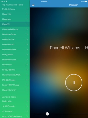 * Multiple Feel Good Music/Happy Songs streaming music radio plus Comedy Stations