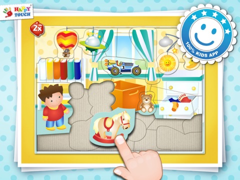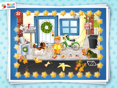 The app guarantees long-lasting fun due to the great variety of puzzle-pieces that change order with each new turn. Choose between many places around the house.
