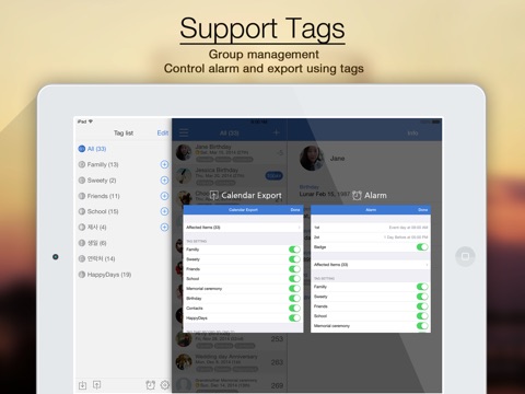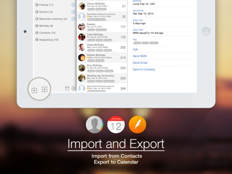 - HappyDays can read events from Contacts