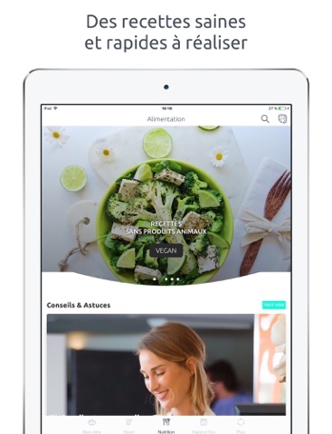 - Des vidéos dentrainement variés proposées par des coach qualifiés : Yoga, Fitness, Pilates, Stretching.