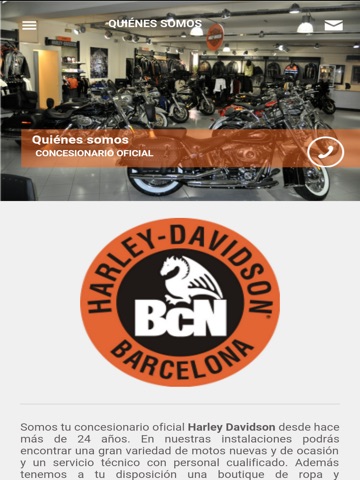 Somos tu concesionario oficial Harley Davidson en Barcelona desde hace más de 24 años. En nuestras instalaciones podrás encontrar una gran variedad de motos nuevas y de ocasión y un servicio técnico con personal cualificado. Además tenemos a tu disposición una boutique de ropa y complementos así como una extensa gama de recambios y accesorios.