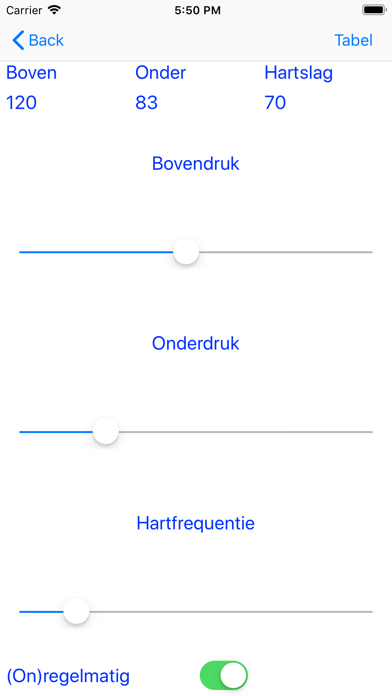 Bovendruk, onderdruk, hartfrequentie en regelmaat worden geregistreerd en in de Cloud vastgelegd. Het gemiddelde kan worden berekend en een overzicht van de metingen de tijd kan worden opgevraagd.
