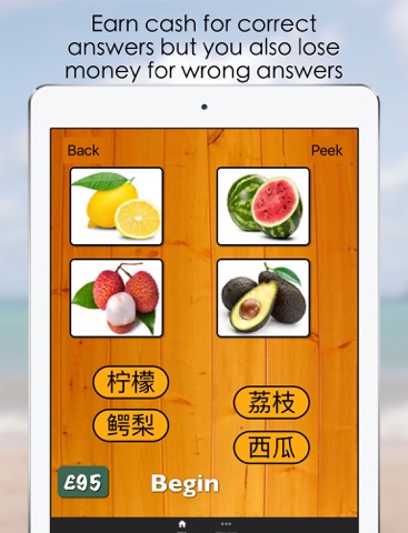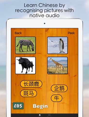 Learn Chinese vocabulary with native Chinese speaker audio and. A simple fun game where you must match all of the Chinese words with the pictures. Earn game money for correct answers but be careful because you will lose money for wrong answers. Then you can use the game money to unlock the rest of the categories for study. If you really cant tell what the picture is, there is a peek option but it will cost you game money to do so.