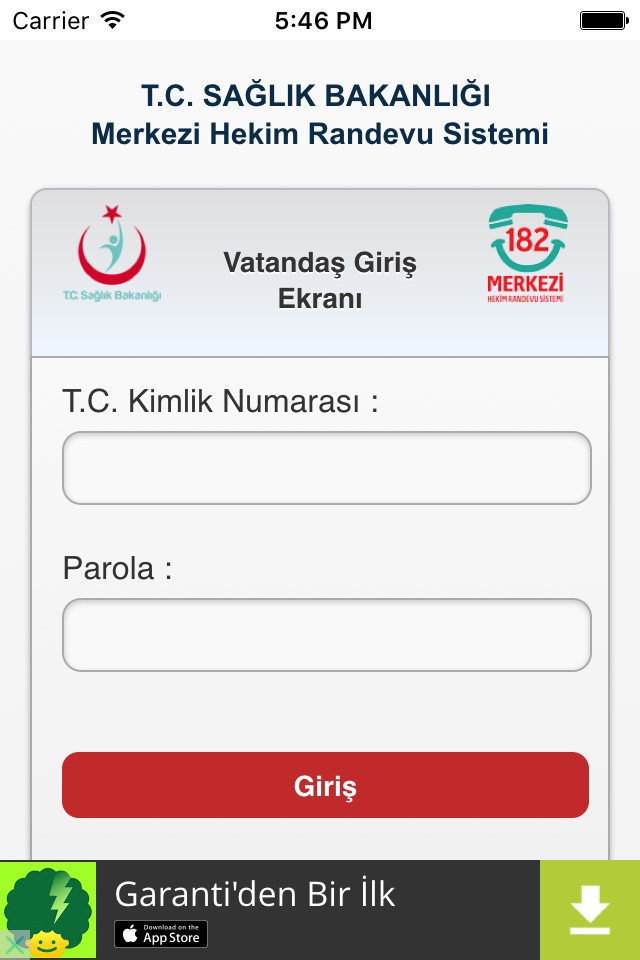 T.C.Sağlık Bakanlığı Merkezi Hekim Randevu Sistemi.