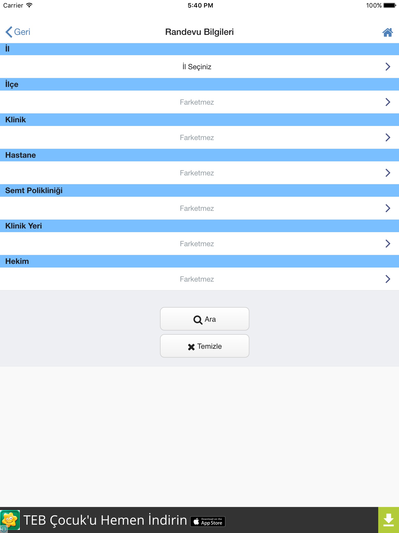 Tüm Türkiyedeki devlet hastanelerine randevu alabilirsiniz.