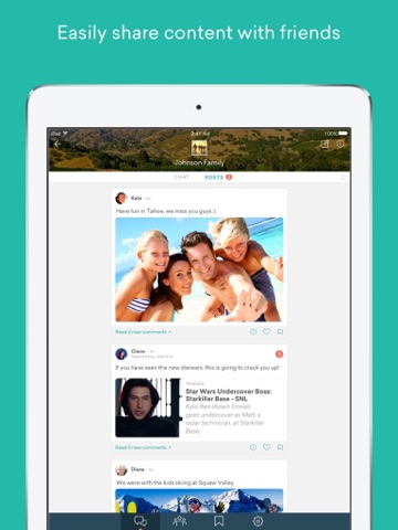• easily share photos, videos, web links, and more with family and friends in a private setting