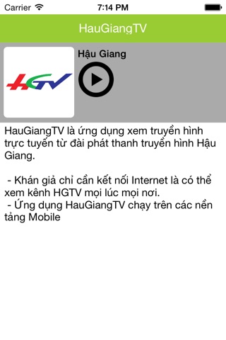 HauGiangTV là ứng dụng xem truyền hình trực tuyến từ Đài phát thanh truyền hình Hậu Giang.