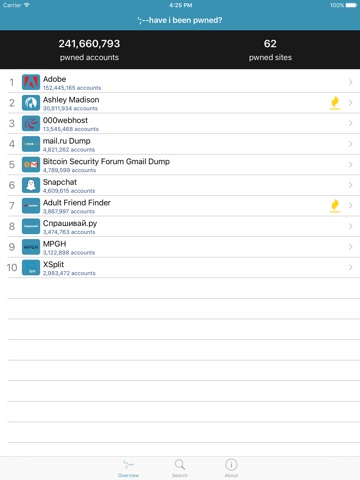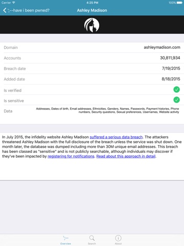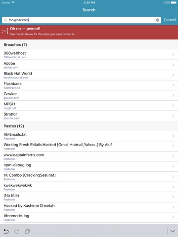 This apps leverages the API as made available by Troy Hunt on haveibeenpwned.com