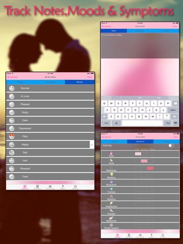 * Easy way to track period, moods, health symptoms, temperature, notes