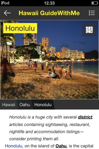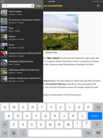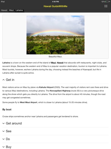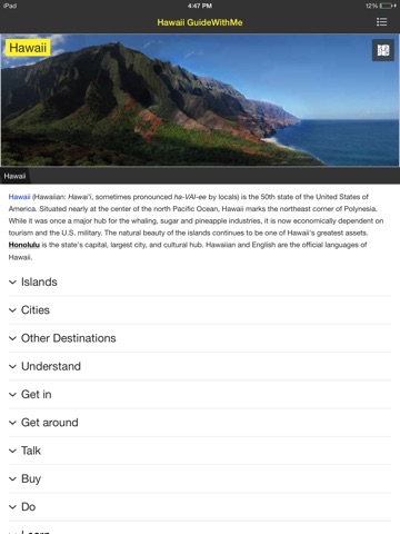 Hawaii GuideWithMe is an offline travel guide, which recommends detailed articles around the country in relation to your current location. Developed by travelers and for travelers, GuideWithMe is a great source of general travel info as well as off the beaten track advice.