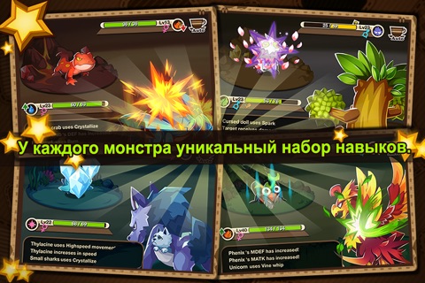 Распоряжайся мудро преимуществами и недостатками каждого монстра. Испытай мощных боссов и выиграйте прекрасные призы!