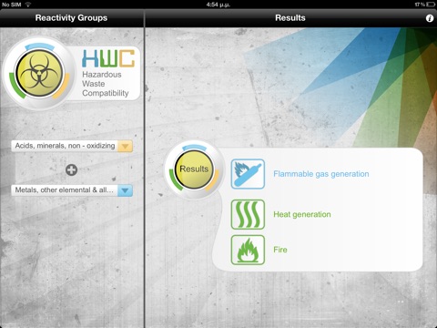 Hazardous Waste Chemical Compatibility is an application that enables users to determine in a simple and comprehensive way the possible hazards that can be expected on hazardous waste storage, based on the chemicals contained in these wastes. This application plays a key role in assessing potential chemical reactions, foreseeing adverse reactions and then enabling handling procedures of hazardous waste to be carried out without risk of unexpected chemical reaction. The application is based on EPA’s Chemical Compatibility Chart (EPA-600/2-80-076 April 1980).