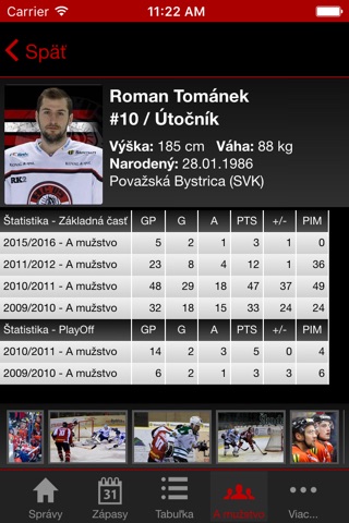 - Zoznam hráčov A mužstva so štatistikami hráča