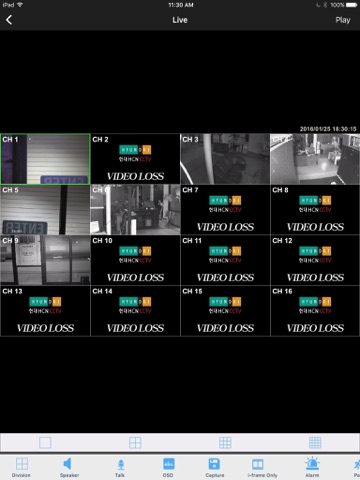 - 라이브 채널 - 1 / 4 / 9 / 16 / 25 / 36 분할 보기