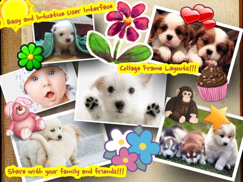 - Ability to use Collage Layers allows you to place pictures on top of below of other ones