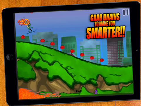 Now that the world has been taken over by us zombies - we need to get to school! And what could be more fun than skating past the burning city, collecting more brains to help with the school work!?