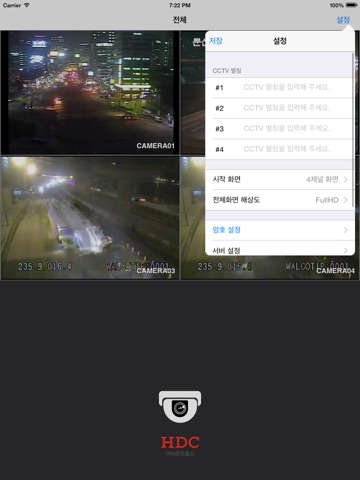 4채널의 영상을 한 화면에서 볼 수 있으며, 특정 영상을 터치하여 전체화면에서 영상을 확인 할 수 있습니다.