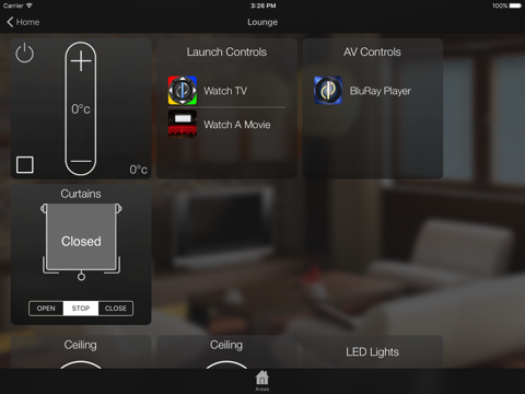 You can also use the app to control AV equipment using a DemoPad Centro-C IP gateway or a Global Caché IP2IR, see www.demopad.com for more information