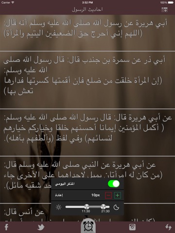 فكره التطبيق رائعه جزاكم الله خيرا ينقصكم فقط التنوع في مضمون الاحاديث فاني اراها تتحدث في موضوعين فقط