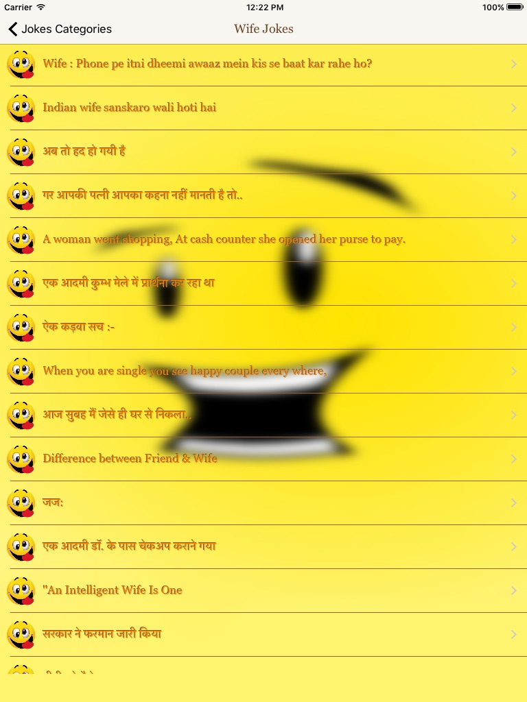 * Thousands of Awesome Funny Jokes in many categories like Hindi,English,Santa- Banta Jokes,Funny Jokes, Doctor Jokes, Teacher Student Jokes, Pathan Jokes or many more.