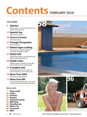 I am an avid naturist and was looking for a magazine that embodied naturism around the world, which this magazine does , however this magazine is full of adds and it does not stay true to its name. There are many pictures of naturists enjoying themselves but each one is censored leaving me feeling almost ashamed of the magazine. We are born nude, dont be afraid to show it! There is a huge difference between porn and naturism. As long as there are people enjoying the freeness and companionship of other naturists and that there sexual desire for one another stays behind closed doors to protect the children we are simply living the life we were meant to.