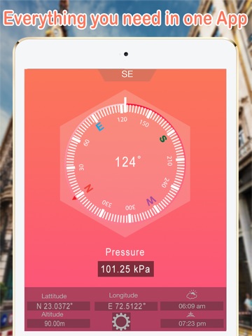 GPS Heading Compass is the best compass App for iOS, you can check all the information right and it uses the barometer and gyrocompass