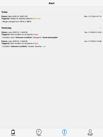 You can follow your patients as they track and update their health status, get notified about changes you deem important and help with timely advice and guidance.