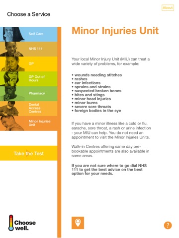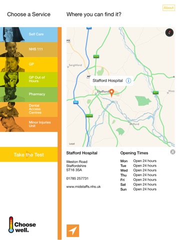 There are many alternatives to A&E where you can receive emergency care and treatment. This app helps you to access your local services, in the Staffordshire, Shropshire, Herefordshire, Telford and Wrekin Areas, quickly and get the right treatment at the right place and at the right time.