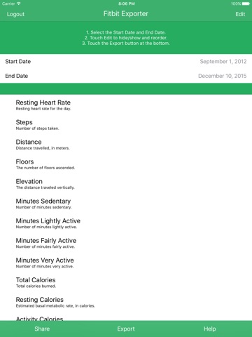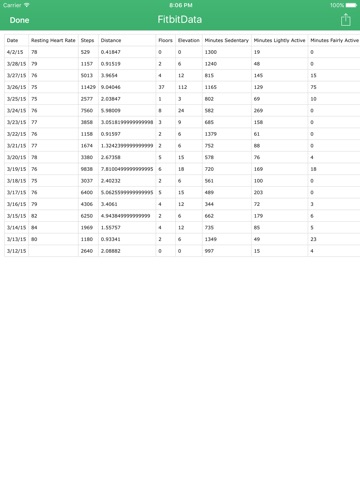 Export your Fitbit data into a CSV file that can be directly imported into apps like Excel and Google Docs! Once exported, the CSV file can be shared by message, email, and to any other apps that support it!