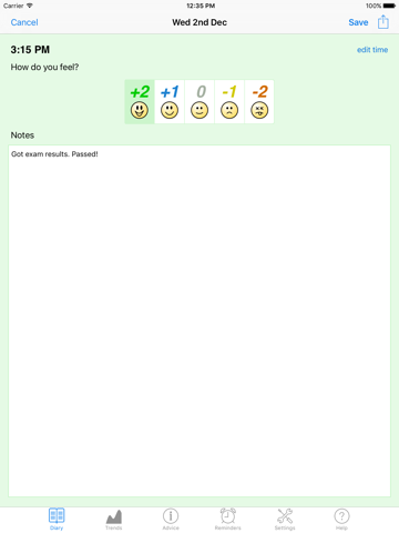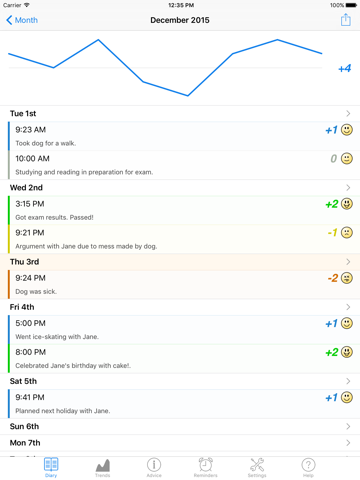 • Track your mood and feelings over time.