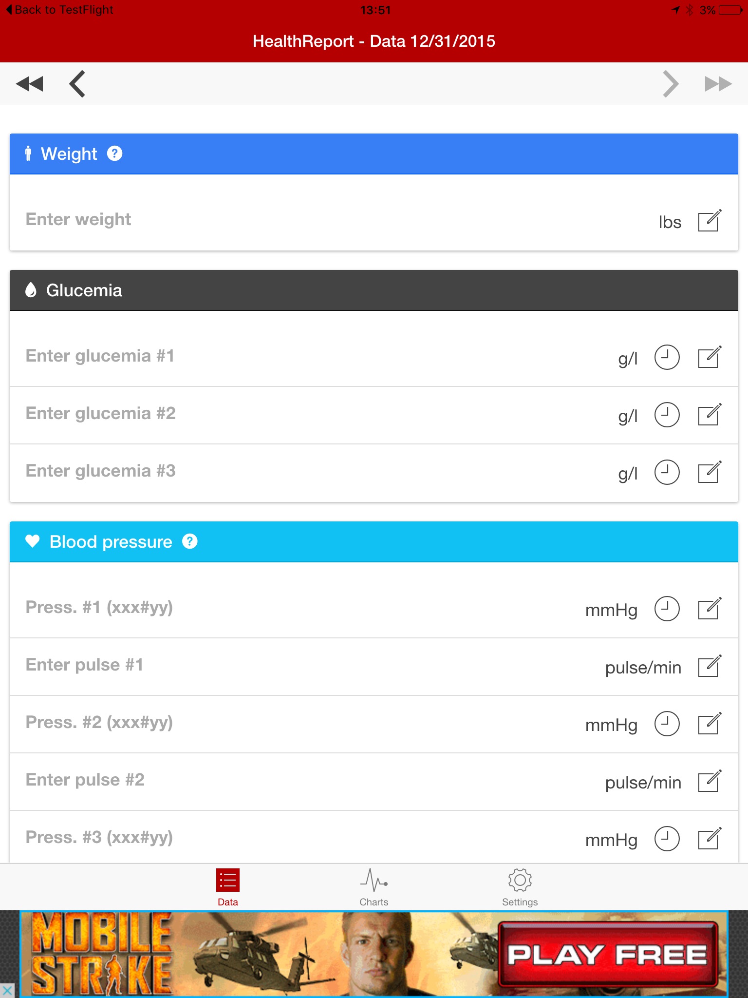 - enter daily weight, blood sugar (glucemia), blood pressure and heart rate