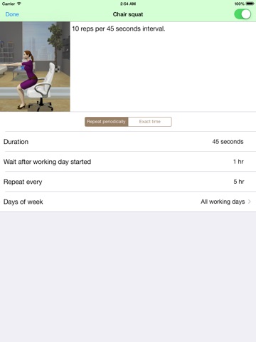 Ultimate workplace reminder. You will never forget to exercise, stretch, drink water and to do other health-related activities in your workplace. Easily customizable to fit into your work schedule.