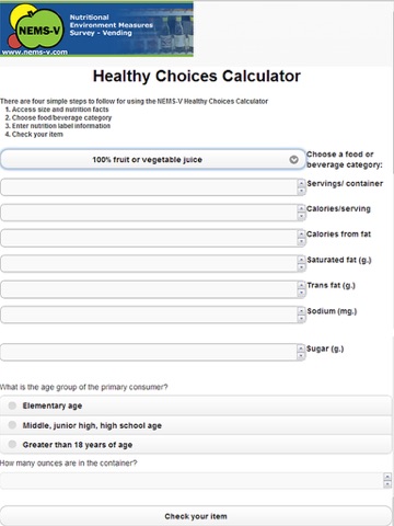 Calculator to determine healthy choices in vending machines.