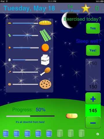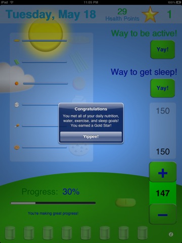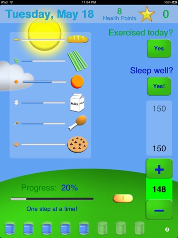6. Start your health goals with Healthy Me! Each morning, the app will set your daily goals back to zero and increment the weight-tracking.
