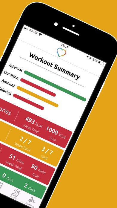 - Four weekly goals (calories, duration, interval, amount)