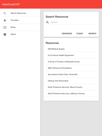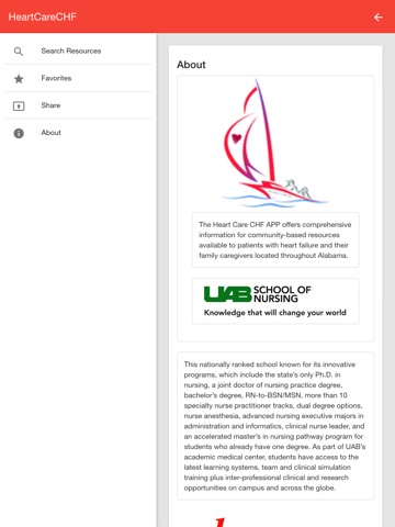 The Heart Care CHF APP offers comprehensive information for community-based resources available to patients with heart failure and their family caregivers located throughout Alabama.
