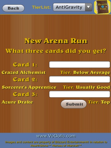 This app caught my attention because they use the tier lists of some of the best hearthstone players In the world. Three card calculator is pretty handy in the arena run. Cant wait to see what these guys do with the tier lists people submit. Im assuming they have something in mind as to what tier lists to display. Anyway, if youre pretty new to hearthstone this is the app for you. Or if you want to play how some of the best players in the world play get it.