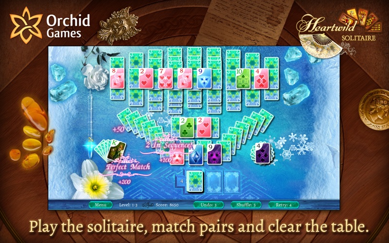 * Play the solitaire, match pairs and clear the table.