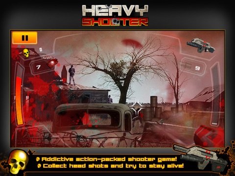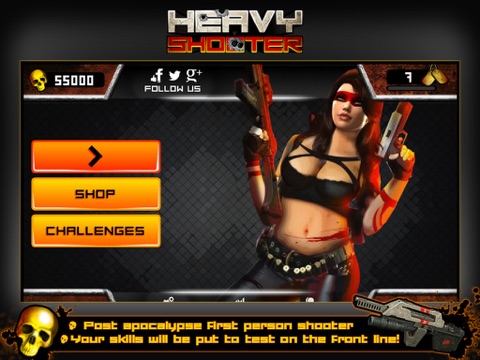 Heavy Shooter is a post apocalypse fps first person shooting game where you are a rogue female assassin and killing is your duty. Shoot it out in four different battle fields; War Zone, Radiation, Crash Site and Quarantine. Accumulate skulls in game and upgrade your assault weapon and game perks. Your shooter skills will be put to test on the front line! Clear waves of enemies, unlock new levels and complete side challenges. A true call to arms.