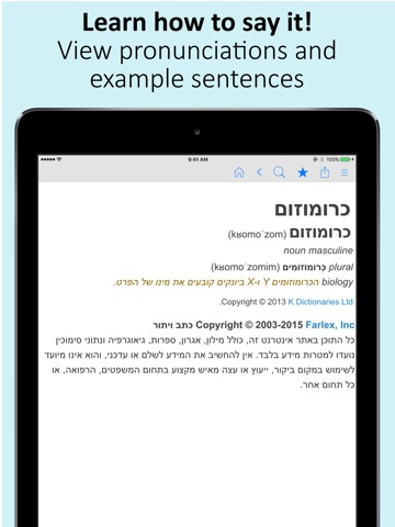 Free offline Hebrew dictionary with pronunciations, example sentences, and more. Build your vocabulary and save unlimited bookmarks.