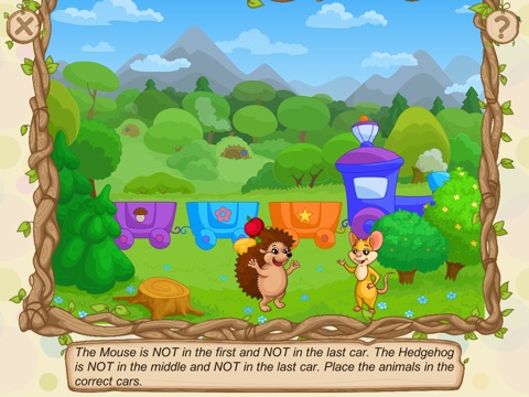 The logic tasks in the game train attention, visual memory, and logic. For instance, the child needs to identify the odd object, find errors within the picture, solve a jigsaw puzzle, find all objects on a table, memorize the characters who came to a birthday party, pick the correct key for a lock, and so on.
