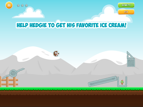 Hedgie madly loves Ice Cream! But the trouble is, the evil forces are constantly prevents him to get his favorite treat. Build a path for Hedgie using items placed on the playing field, by simply dragging and rotating them. As youre ready press the “Gravity” button and the magic begins. Don’t hit the goal on the first try? Don’t worry, just use the "Fix" button and all objects will moved to places which you set before.