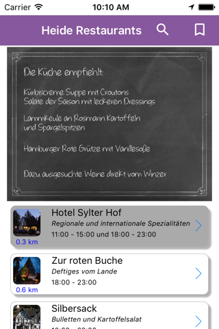 Heide-Restaurants präsentiert Dir die aktuellen Angebote direkt aus der Küche. Die Informationen werden häufig täglich aktualisiert und zeigen Dir immer die leckersten Gerichte in der Region.