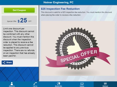 About Us, Call Us, Mobile Web, Inquiry, Discount