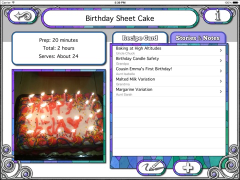 Store as many notes and stories about each recipe as you like! Preserve your special memories or share recipe ideas with friends and family! Examples: serving suggestions, recipe variations, recipe origin, family history, fond memories, special occasions.