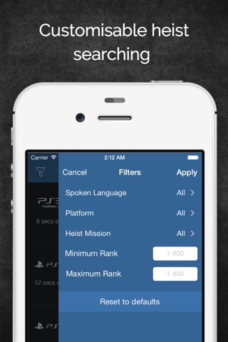 * Filter heists by Platform, Language, Ranks etc