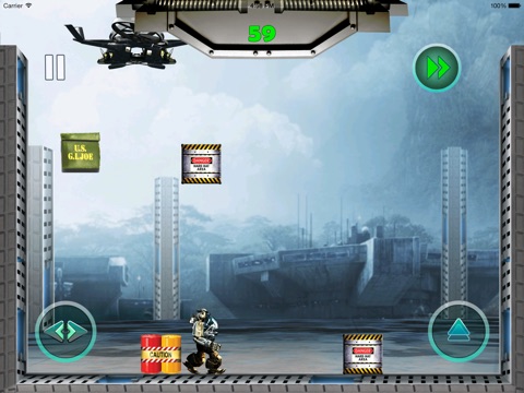 Check out this cool animated game of agility in the Future of Helicopters and Robots. The Helicopter is dropping boxes all over the place and it will be your job as the Robot to place them in line and on time to get them shipped off. This is a great game for all players as it starts pretty easily but its going to get much more difficult as you keep on playing. Compare your scores on Game Center with others. You can even change the music to select the one you like for an even better game experience. Enjoy!