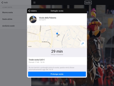 Apri l’app nella sezione parcheggi, seleziona l’area, imposta la targa del veicolo, decidi la durata della tua sosta. Paga in pochi secondi con i punti equivalenti a euro accumulati o con carta di credito.