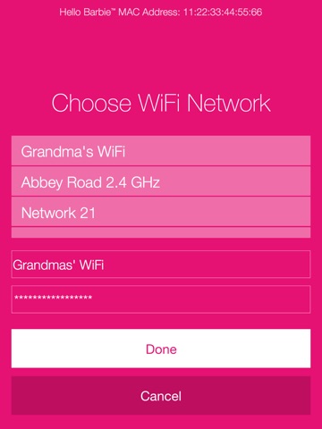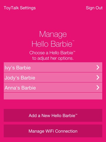 This app is designed for parents to gain parental consent for kids to use the Hello Barbie™ doll and to configure the Hello Barbie doll to connect to a WiFi network.