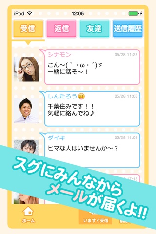 メッセージは受信箱に届きます。待ちきれない人は「今すぐ受信」をタップで受信することもできます。気に入ったら早速返信してみましょう。